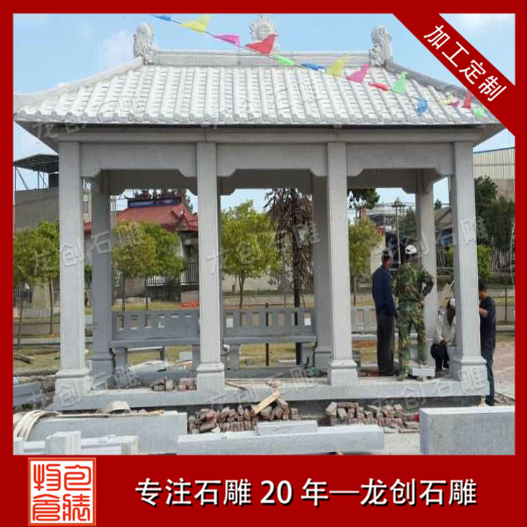 長方形石亭子與園林相伴而生,相適發(fā)展,石亭子至今仍是我國園林中不可缺少的建筑形式之一,也是其他類型建筑難以替代的。亭子的安裝不論在點(diǎn)染園林景觀上或游覽的使用功能上,石亭子具有獨(dú)特的意義和作用,因而在各類型園林綠地中得以普遍、廣泛的應(yīng)用。