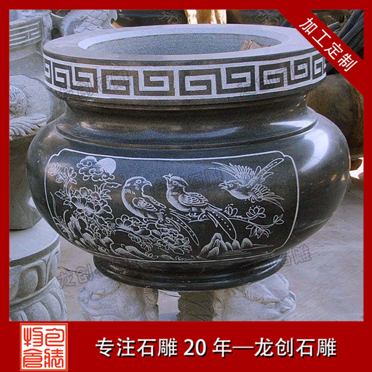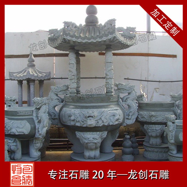 寺廟石雕香爐,佛教中稱它寶鼎,除了方形的香爐外,還有圓形。圓形香爐都有三足,一足在前,兩足在后,是如法的放置;常以之譬喻佛教中的三寶,缺一不可。中華民族香文化發(fā)展得很早,古時(shí)候的人就常以焚香木熏居室以除臭穢,所以古人讀書彈琴,喜歡先焚一爐香,可以凈雜念而使精神集中。重視欽水思源,慎終追遠(yuǎn)是中國人的美德,所以自古以來,華人都拜天地神祗,祭祖先;上香表示敬意,是祭拜儀式中的一個(gè)主要項(xiàng)目,香爐就派上用場了。