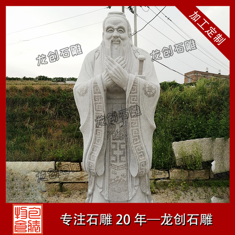 石雕孔子,便是運(yùn)用各種天然石材加以雕琢工藝制作成的孔子雕像。石雕孔子首要運(yùn)用圓雕工藝技法,直接在石材上對孔子的形象進(jìn)行刻畫??鬃拥裣裼性S多的版本,現(xiàn)在運(yùn)用較多的都是參閱了唐代吳道子的孔子畫像樣本,全體形象和顏悅色,莊嚴(yán)慈祥而又富有智慧。