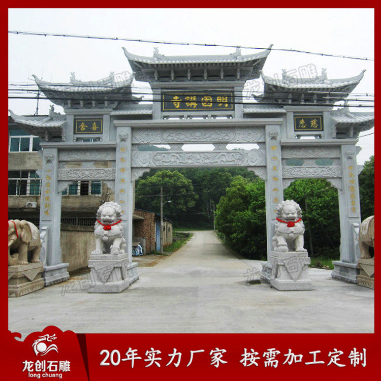村口石牌坊工藝也是會對牌坊價格有所影響。農(nóng)村牌坊定做在選擇上可以選擇比較精細或者是比較粗狂的,這兩種它對于牌坊制作來說也是會影響到這種牌坊在價格上面的差別的。