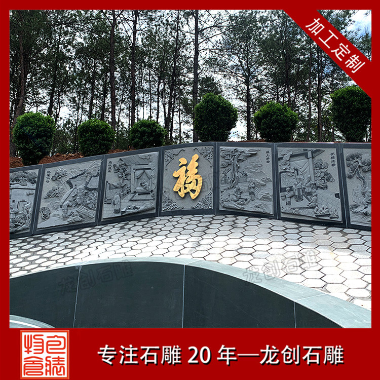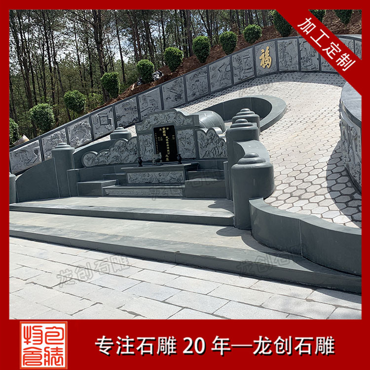 在墓園會使用到的石雕制品有很多,除了我們一開始會想到的石雕墓碑以外,還有些墓園會安裝石雕欄桿和石雕涼亭、石雕浮雕,墓園石雕欄桿除了起到安全防護(hù)作用外,還具有裝飾作用,而石雕涼亭的主要作用就是供人休息用的,石雕浮雕主要作用就是裝飾了,此套石雕墓圍的浮雕圖案是二十四孝。