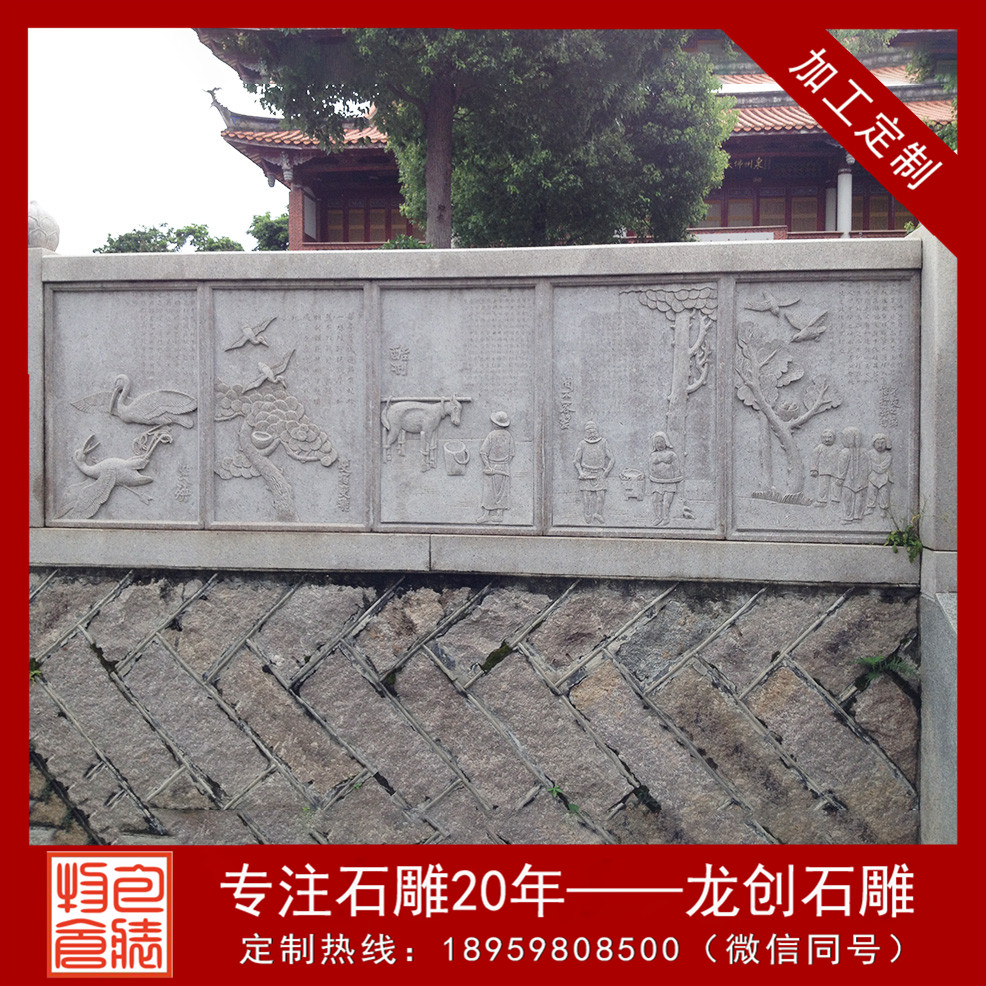 石材浮雕是將精巧的圖案雕琢在石材外表,美觀大方,且極富平面感。石材浮雕作為一種人們本人設(shè)計(jì)創(chuàng)作并雕琢的手工工藝品,是最古老的文化,并留給我們現(xiàn)代人豐厚的歷史文化藝術(shù)遺產(chǎn)。在大型浮雕制作中它一直用共同的手法和行為藝術(shù)方式來豐厚著人們的文化歷史。