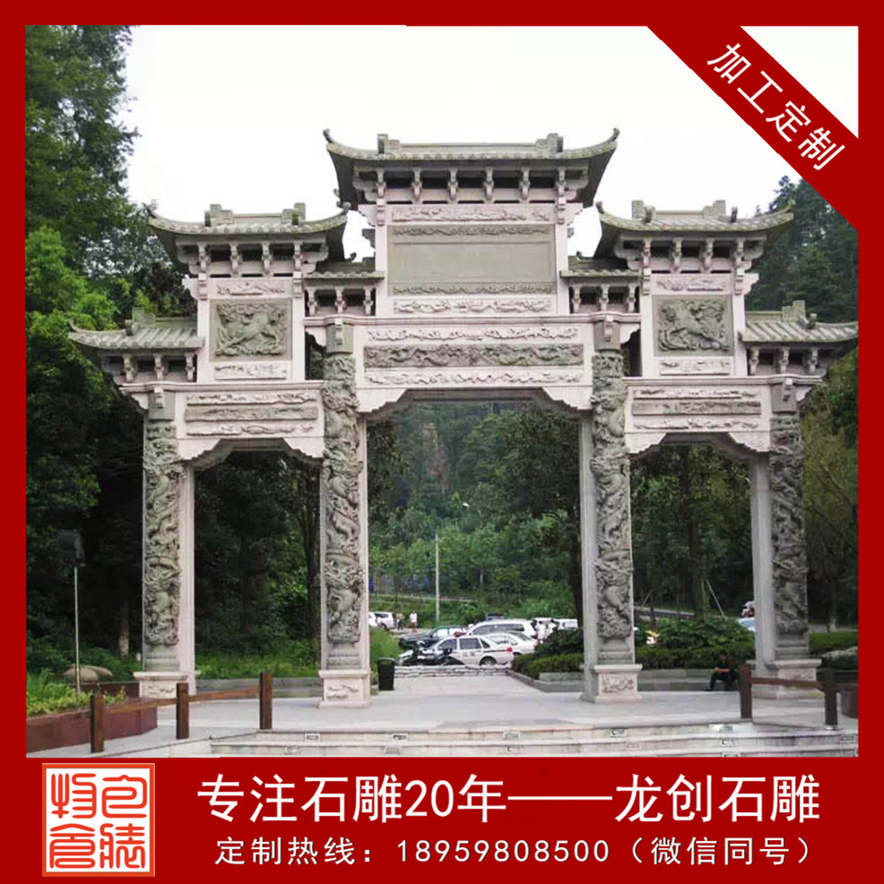 石雕山門是漢族傳統(tǒng)建筑中非常重要的一種建筑類型,用花崗巖修建的石雕山門,是封建社會(huì)為表彰功勛、科第、德政以及忠孝節(jié)義所立的建筑物。也有一些宮觀寺廟以山門作為山門的,還有的是用來標(biāo)明地名的。又稱牌樓,為門洞式紀(jì)念性建筑物,宣揚(yáng)封建禮教,標(biāo)榜功德。建筑是凝固的歷史。