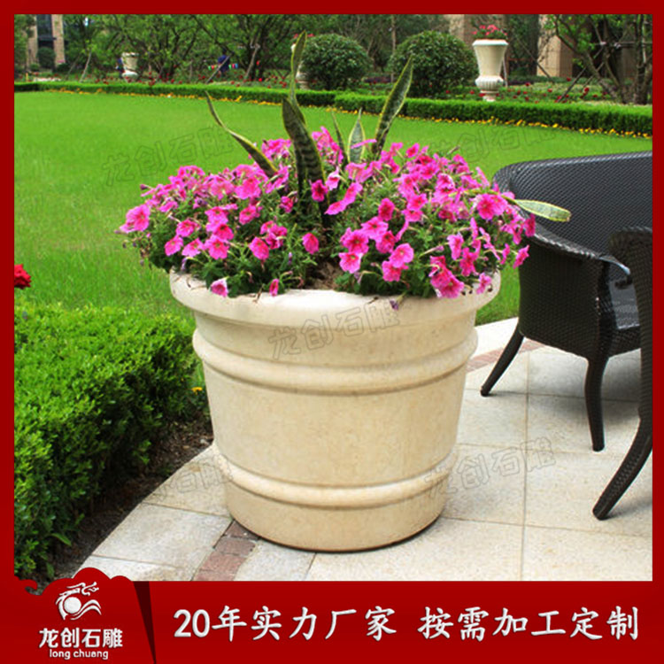 石雕花缽的雕刻精細(xì),大小各異根據(jù)不同環(huán)境而定,石雕花缽堅固而耐用,石雕花缽花盆的外觀及顏色不易受到外界因素而變化或損壞,石頭花盆制作過程體現(xiàn)出中華古老文化的精髓,源遠(yuǎn)流長,體現(xiàn)出中華傳統(tǒng)文化的精神所在。石雕花缽的表面加工可隨心而定,可磨砂,拋光、噴砂,及雕刻各種圖案花紋,體現(xiàn)出不同價值的藝術(shù)展現(xiàn)。訂做各類石雕花盆花缽景觀園林盆栽找惠安龍創(chuàng)石雕廠家。