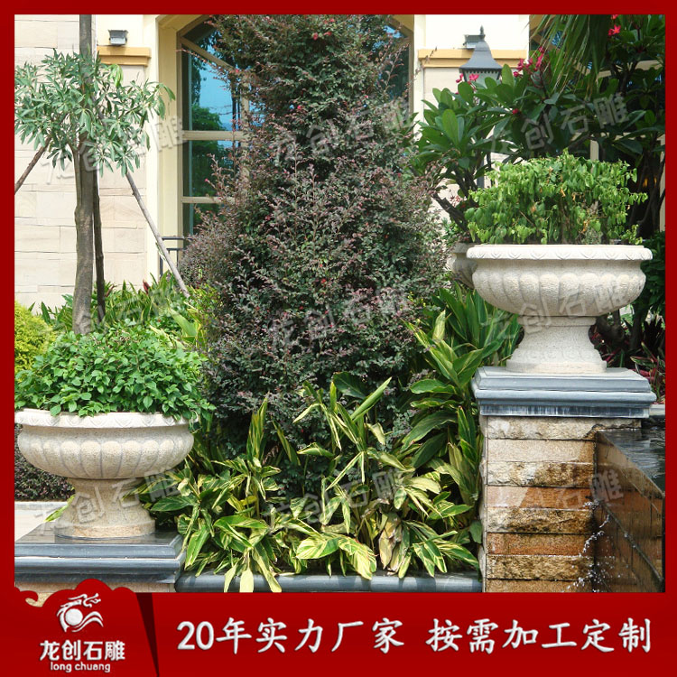 石材花缽近年來應(yīng)用較為廣泛,在上面種植鮮艷的植物花卉,有一定的造景效果,被人們譽(yù)為“可移動的小花園”。以其方便快捷移動的方式深受人們喜歡,且石材花缽耐腐蝕性非常好,在實(shí)用年限上有很大優(yōu)勢,在造型上更是有著自己的獨(dú)特的特點(diǎn)。定制批發(fā)花缽找龍創(chuàng)石雕石材花缽廠家。