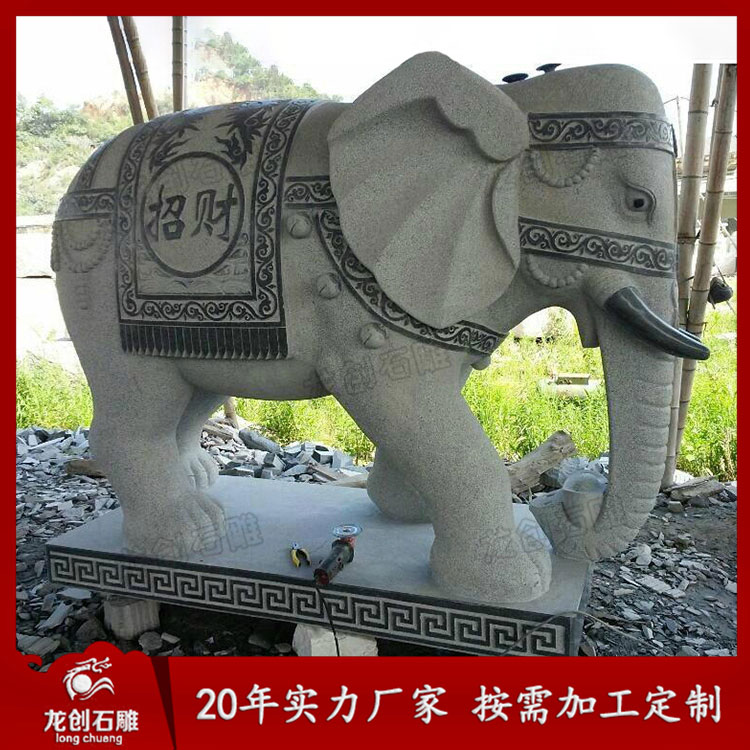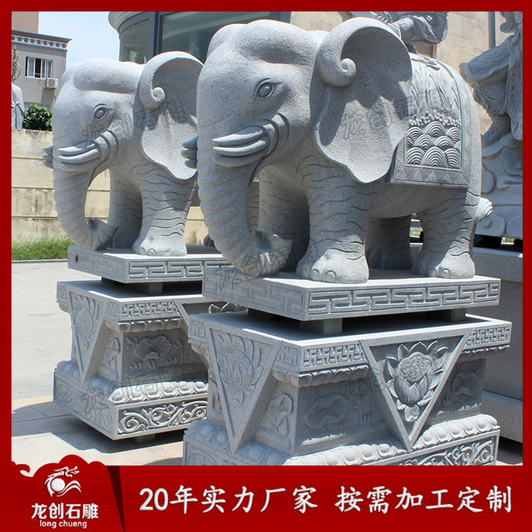 石雕大象在一些宗教廟宇的場(chǎng)所擺放很多見(jiàn),寺院的花崗巖石雕大象擺件通常會(huì)帶有明顯的宗教色彩,比如那些六牙石雕大象,90%都是擺放在寺廟中的。為什么這么說(shuō)呢?石雕大象本身是兩個(gè)牙齒的,如果做成六個(gè)象牙,那就是代表了佛教的六波羅蜜,是修行成道的六個(gè)法門(mén)。一對(duì)飽含佛教文化以及中華文明元素的花崗巖石雕大象,主要表現(xiàn)在以下幾個(gè)部位。首先是腳趾部分。這對(duì)大象的腳趾部分一改以往的腳趾貼地的做法,而是將腳趾王上挪移了一點(diǎn),這是因?yàn)樵O(shè)計(jì)時(shí)將大象腳站在蓮花臺(tái)上,帶有濃厚的佛教文化。大象的側(cè)身部雕刻的卍字符號(hào)是如來(lái)胸前的圖案,也是佛教文化中非常見(jiàn)的一種標(biāo)識(shí);第三是大象的象牙比實(shí)際的動(dòng)物大象多了4根,這六根象牙代表著佛教的六度,是到達(dá)西方極樂(lè)世界的六個(gè)方法。 象諧“祥”音,所以常有吉象之稱,適合擺放在家居別墅大門(mén)口,建筑小區(qū)門(mén)口、酒店別墅、寫(xiě)字樓等各種場(chǎng)景擺放。