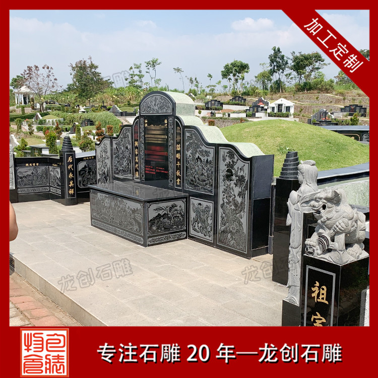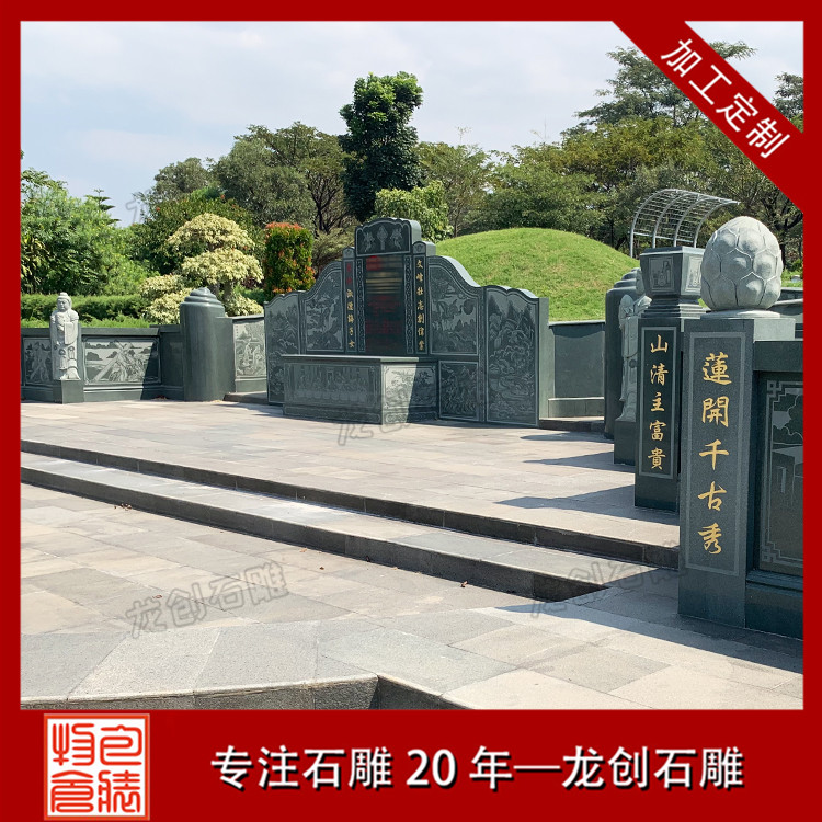 公墓墓園石雕墓套墓圍設(shè)計(jì)需要考察當(dāng)?shù)氐膶?shí)際情況,再設(shè)計(jì)出合適的樣式和尺寸,結(jié)合實(shí)際需求再設(shè)計(jì)浮雕圖案,像松鶴、鹿竹、蓮花、二十四孝等等吉祥如意的圖案。