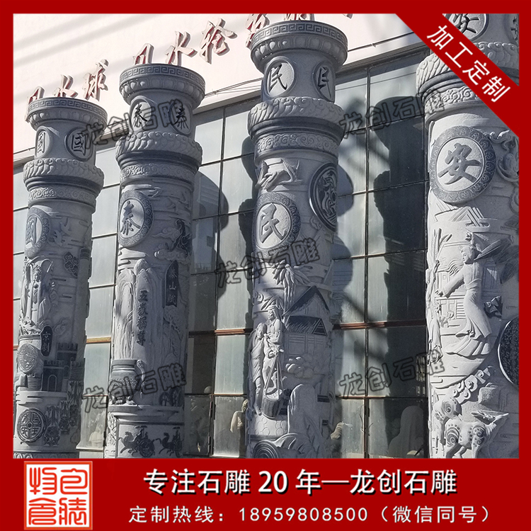 2、尺寸影響價(jià)格。石雕文化柱的直徑尺寸有60cm、80cm等,高度也是可以選擇的3米、6米、8米等都可以做,直徑越大,高度越高,所用的材料越多,價(jià)格也是成正比例的。但是友情提示,并不是越高越大就越好,擺放在不同的區(qū)域,要選擇合適的尺寸,這樣才美觀又省錢。