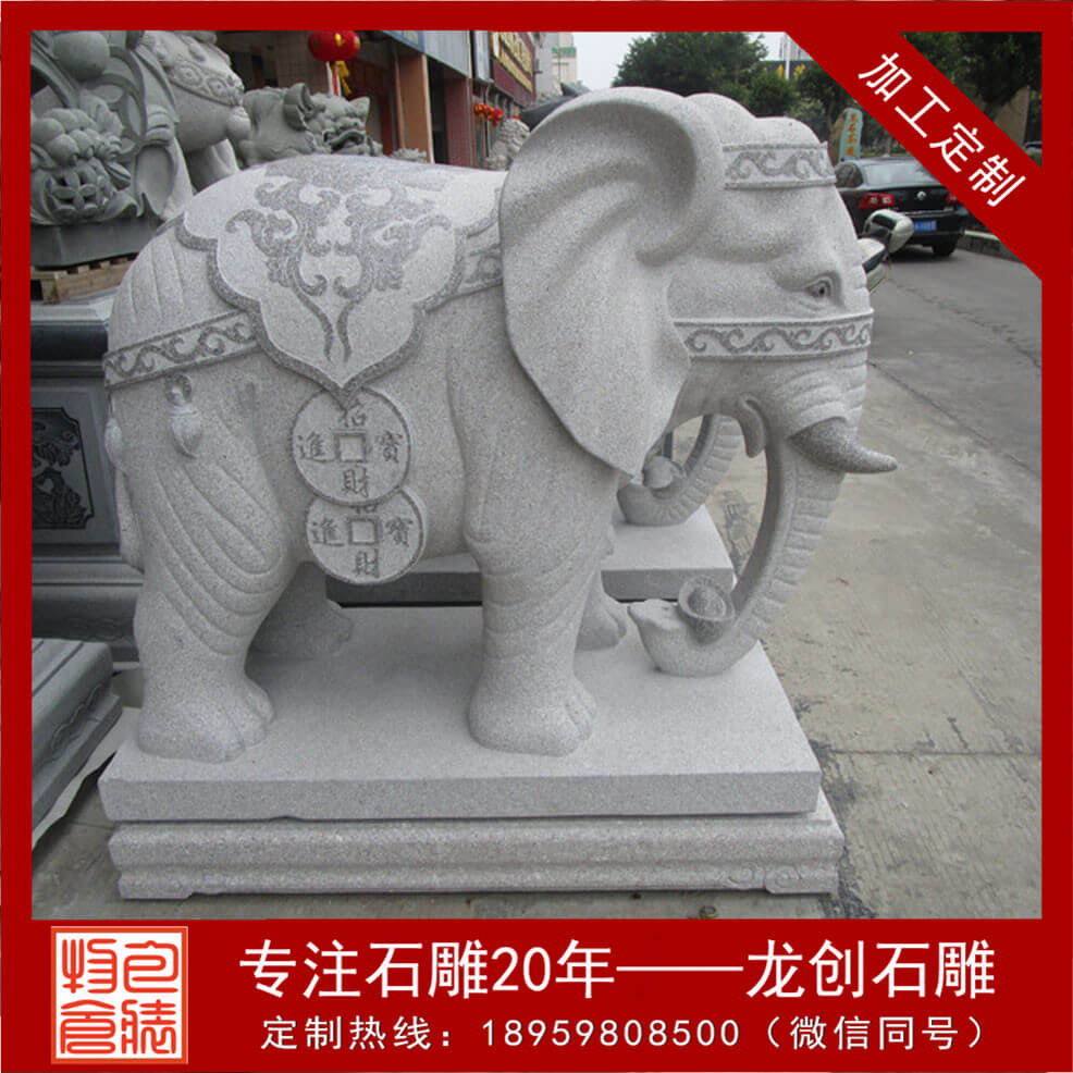 石雕大象價(jià)格一般依據(jù)其資料不同、顏色不同、巨細(xì)及工藝的雕工雜亂程度的不同,石雕大象價(jià)格區(qū)間一般在5000-30000元每對(duì)。