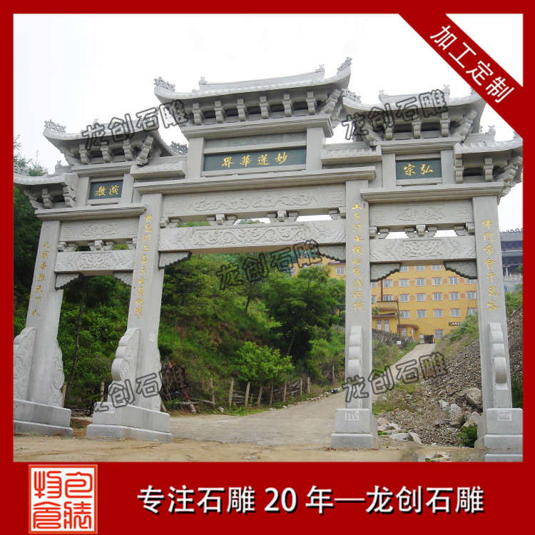 花崗巖石牌樓廠家龍創(chuàng)石雕生產的石牌樓古樸典雅、新穎美觀,無論人物或動物都栩栩如生,成為提升形象、營造古典文化的一大特色。我廠專業(yè)制作設計各種石牌樓,青石牌樓定制,在石雕行業(yè)中有著專業(yè)的技術團隊,可以為每一個地方設計出具有他們當?shù)匚幕氖茦?,龍?chuàng)石雕全體員工熱誠歡迎您前來參觀。