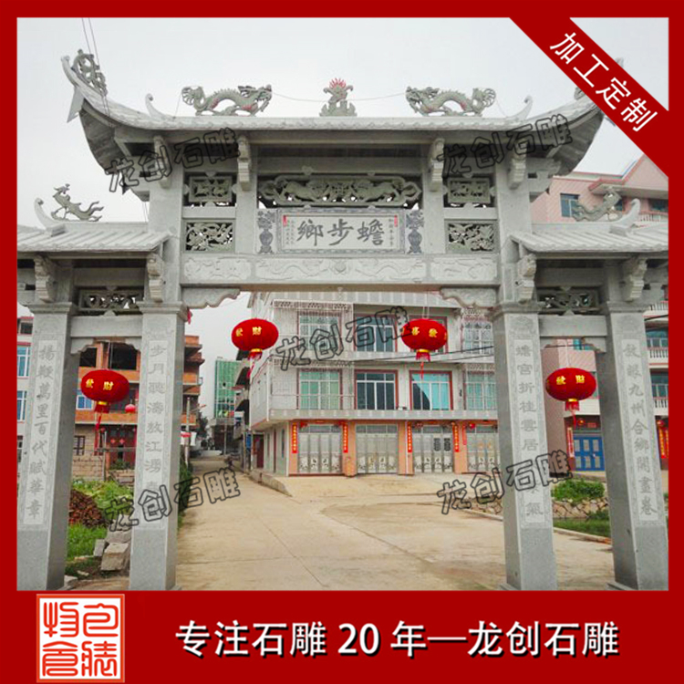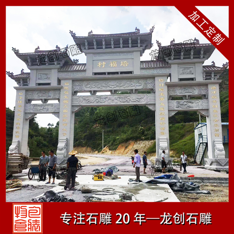 正常情況下,普通三門形式的農(nóng)村石牌坊報價在15-30萬元之間,但是每個客戶要求雕刻的圖案和制作的尺寸都不一樣,所以價格會有差異,我們要根據(jù)自己村莊的地理空間大小和財力選擇定制適合自己村莊的石牌坊大門。